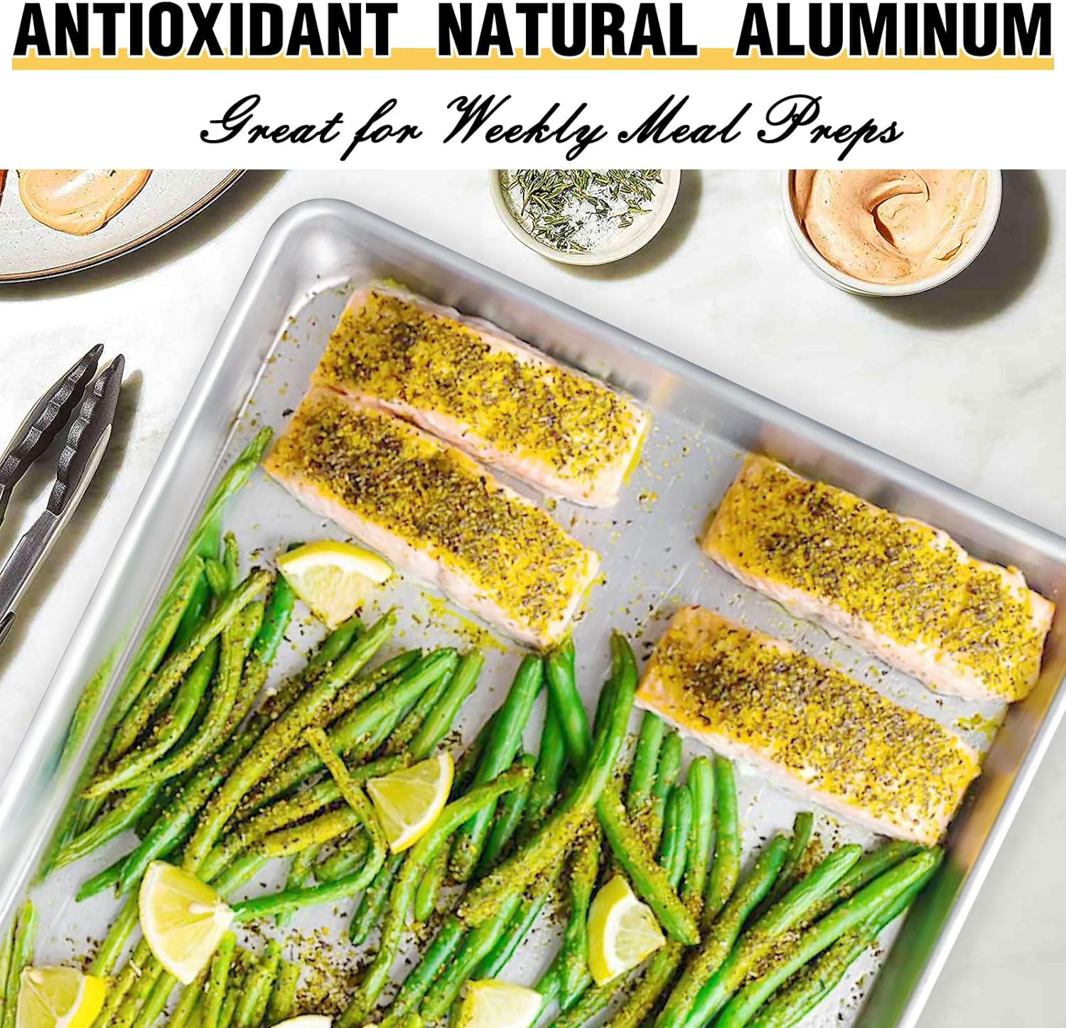 Introducing the Commercial Quality Baking Sheet Pan Set by Umite Chef, the perfect addition to your kitchen bakeware collection. These natural aluminum cookie sheet pans are designed to provide exceptional performance for all your baking and roasting needs.